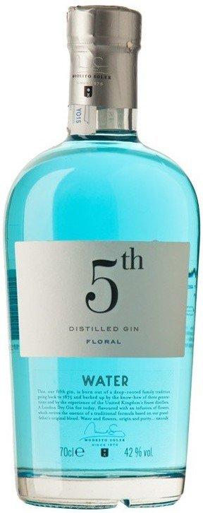 5th Distilled Gin je moderní London Dry Gin, který je produkován ve španělským lihovaru Modesto Soler, založeném v roce 1875. Vysoce kvalitní gin, představila v krásném designu láhve, je k dispozici ve čtyřech různých verzích, které se liší v barvě a chuti a jsou pojmenovány po čtyřech prvcích - voda, země, vzduch a oheň. Modře zbarvený 5th. gin Water je ochucen ambróziový květinovými tóny.