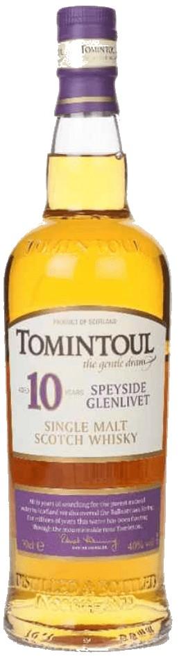 Desetiletý Tomintoul je klasická lehká whisky. Její aroma je trávové s trochou citrusu. Má nasládlou chuť s trochou koření a medu. Zakončení je krátké a vlídné.
